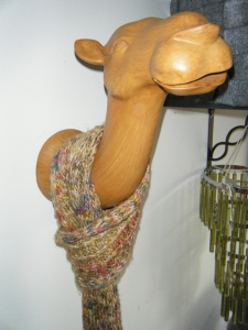 | Home Spun Scarf | Home again for a family winter picnic, I had my Home Spun Wool to keep me busy. As I started to knit a lacy scarf, my cousin Mary claimed it as her own. | ||