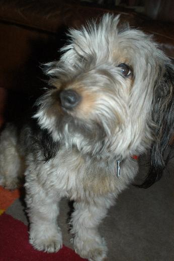 Lola during a dinner party trying to see from whom she can get food.